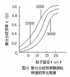 由上式可知分級粒徑d與渦輪的轉速n成反比,與氣流徑向速度的1/2次方成正比。