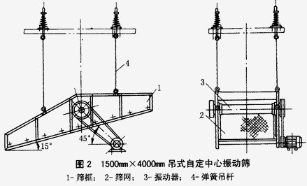 從圖1可以看出,普通圓振動篩與自定中心振動篩的區別僅在于振動器的結構略為不同。前者的軸承中心與帶輪的中心位于同一直線上,當振動篩運轉時,帶輪便隨篩箱一起振動,因此引起三角帶的反復伸縮而使之易于損壞,并且需采用較小的振幅(一般都小于3mm)。由于這些缺點,這種振動篩已很少使用。自定中心振動篩的帶輪中心位于軸承中心與偏心塊的重心之間,并使帶輪的中心線位于偏心塊與振動機體合成的質心上,因此,當振動篩工作時,帶輪就不隨篩箱一起振動,只作旋轉運動,從而還可以采用較大的振幅,以提高篩分效率。因而自定中心振動篩發展很快,獲得了廣泛應用。目前工業生產中采用的圓振動篩一般都屬于自定中心振動篩這一類型。